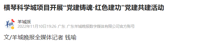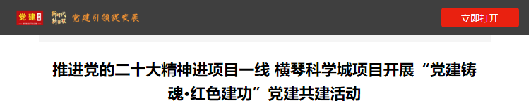 “本次‘黨建鑄魂·紅色建功’黨建共建活動是在大橫琴集團打造橫琴科學城項目黨建聯(lián)建生態(tài)圈的基礎上的一次深化拓展,對推動黨建和項目建設的融合發(fā)展,引導一線黨員堅定理想信念,牢記黨的宗旨,增強責任擔當,有著積極意義,將進一步推動黨的二十大精神在重大項目一線落地見效。”大橫琴集團黨委書記田偉介紹。