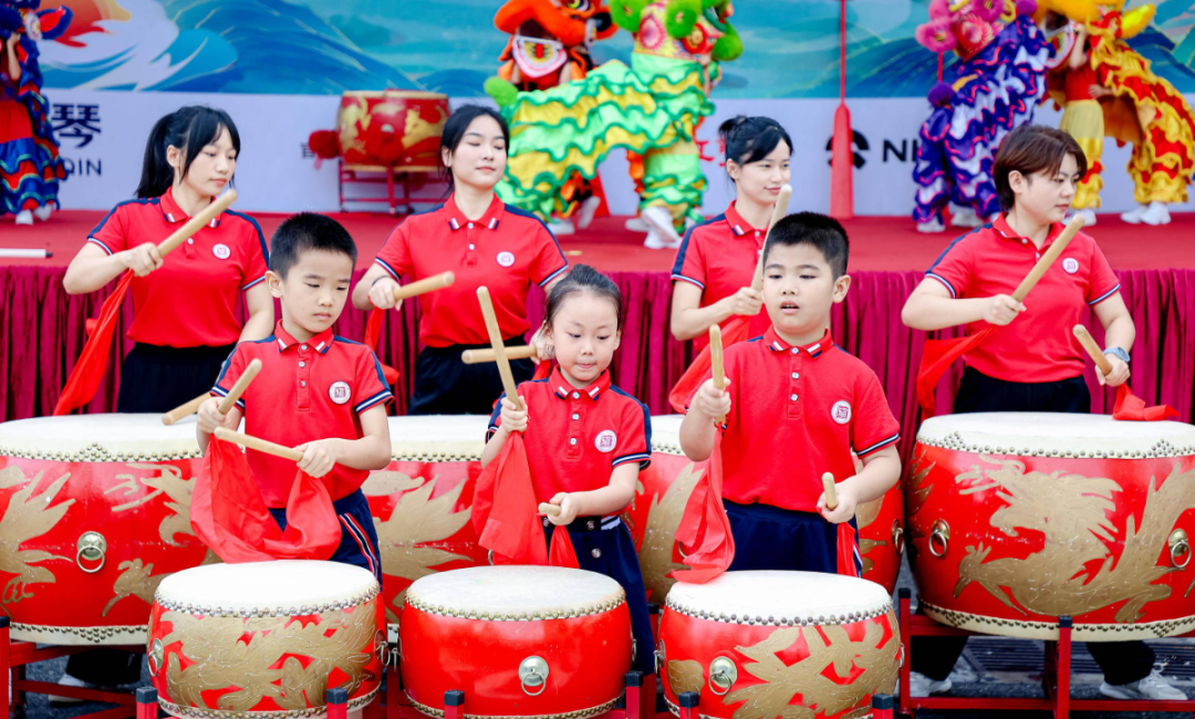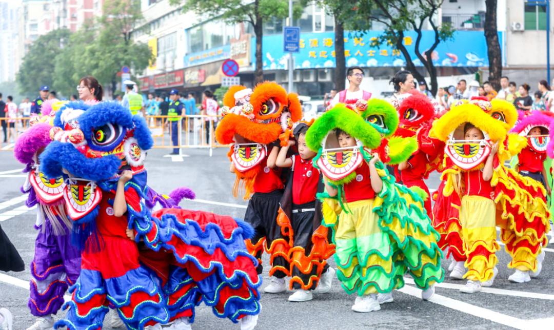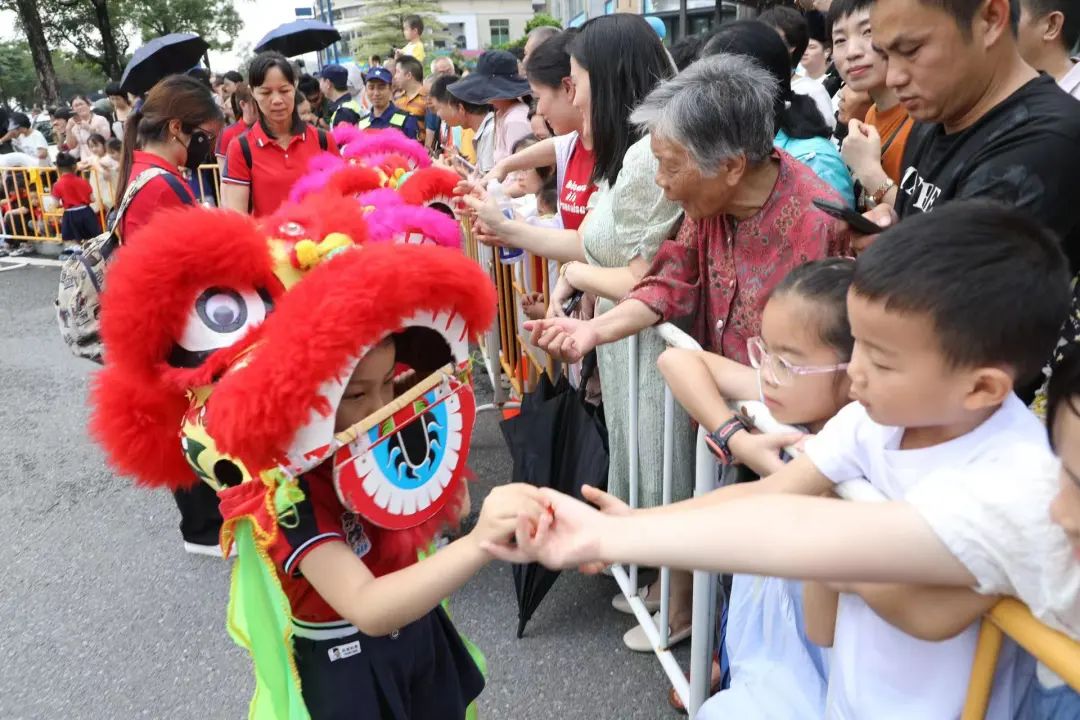 《群獅共舞》《輪滑龍》《賽龍奪錦》《幼兒萌獅》等斗門傳統民俗文化,以及管樂團合奏《迎賓曲》《金龍奪標》、舞蹈《龍騰九洲》、川劇變臉等富有濃厚非遺特色的文體節(jié)目在岸上的舞臺穿插上演。