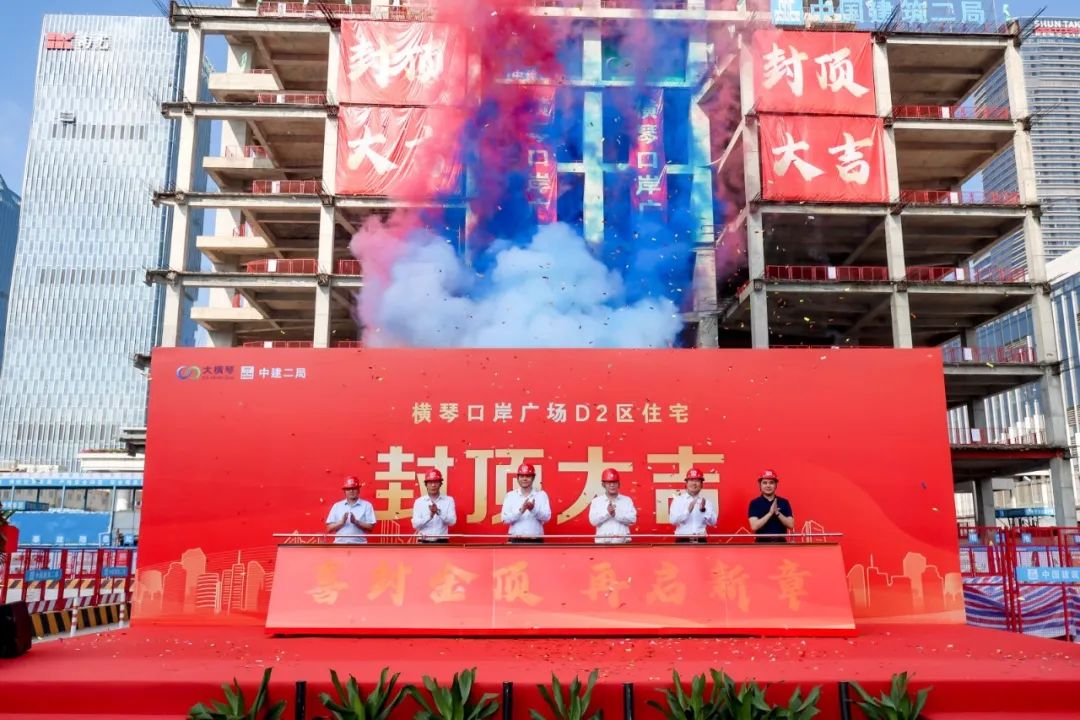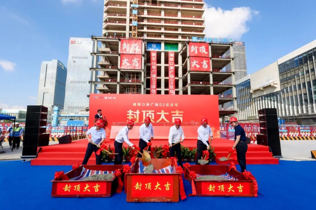 9月27日上午,由珠海大橫琴集團(tuán)有限公司(以下簡(jiǎn)稱(chēng)大橫琴集團(tuán))下屬企業(yè)珠海大橫琴口岸實(shí)業(yè)有限公司建設(shè)的橫琴口岸D2區(qū)住宅主體結(jié)構(gòu)順利封頂。大橫琴集團(tuán)黨委副書(shū)記、董事、總經(jīng)理王宇聲,中建二局華南公司黨委書(shū)記、董事長(zhǎng)曲紅波,大橫琴集團(tuán)總經(jīng)理助理呂海濤等領(lǐng)導(dǎo)嘉賓出席儀式,各參建單位代表及項(xiàng)目一線(xiàn)職工共計(jì)100余人參加活動(dòng)。