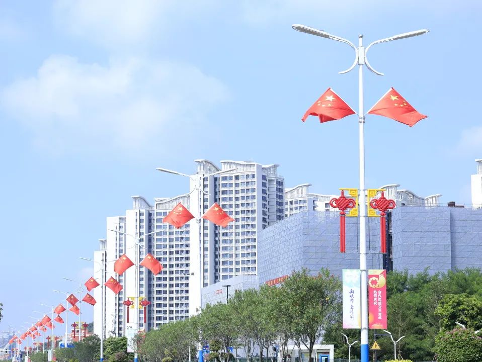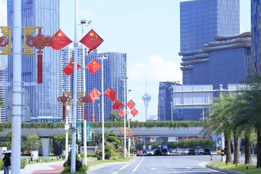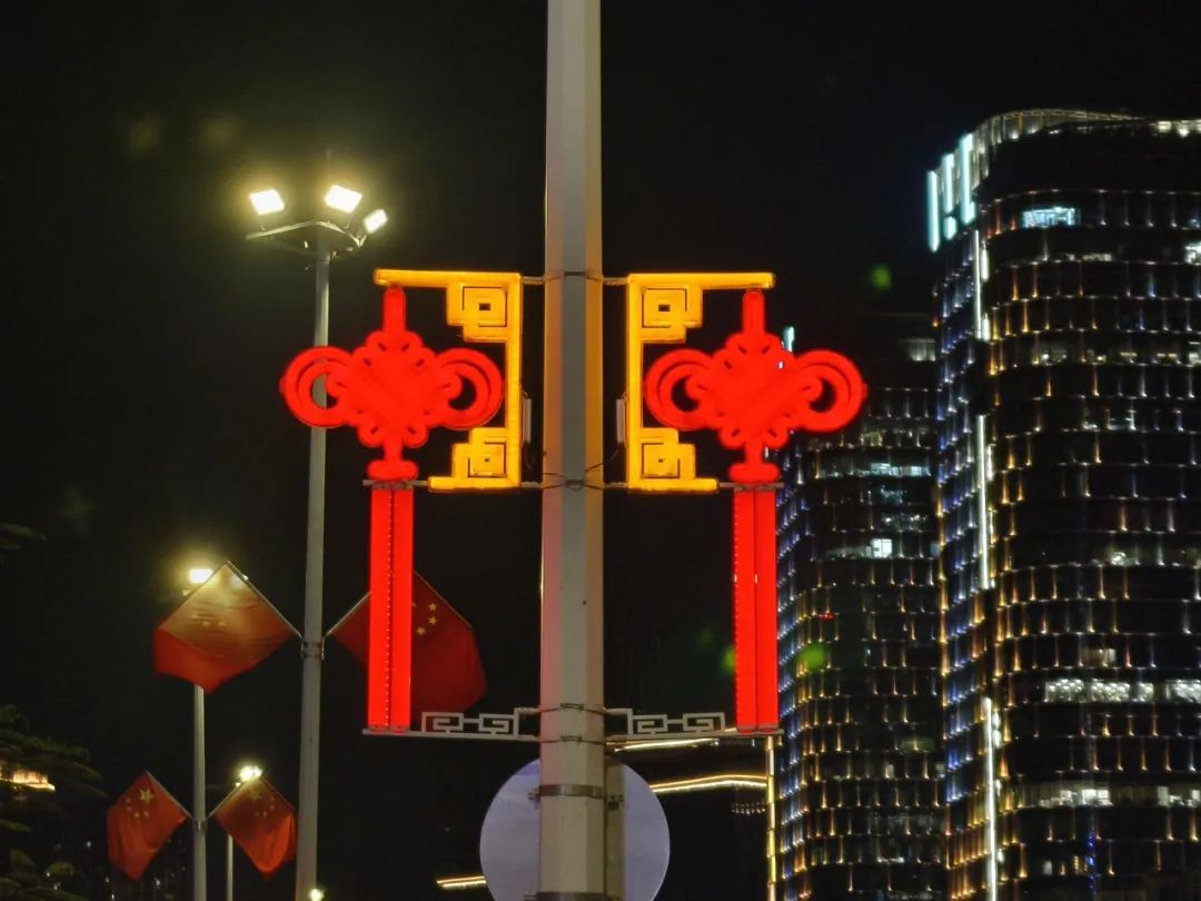 大橫琴城資在港澳大道、環(huán)島西路等重點(diǎn)路段懸掛了 230套中國(guó)結(jié),以亮麗的形象喜迎國(guó)慶。