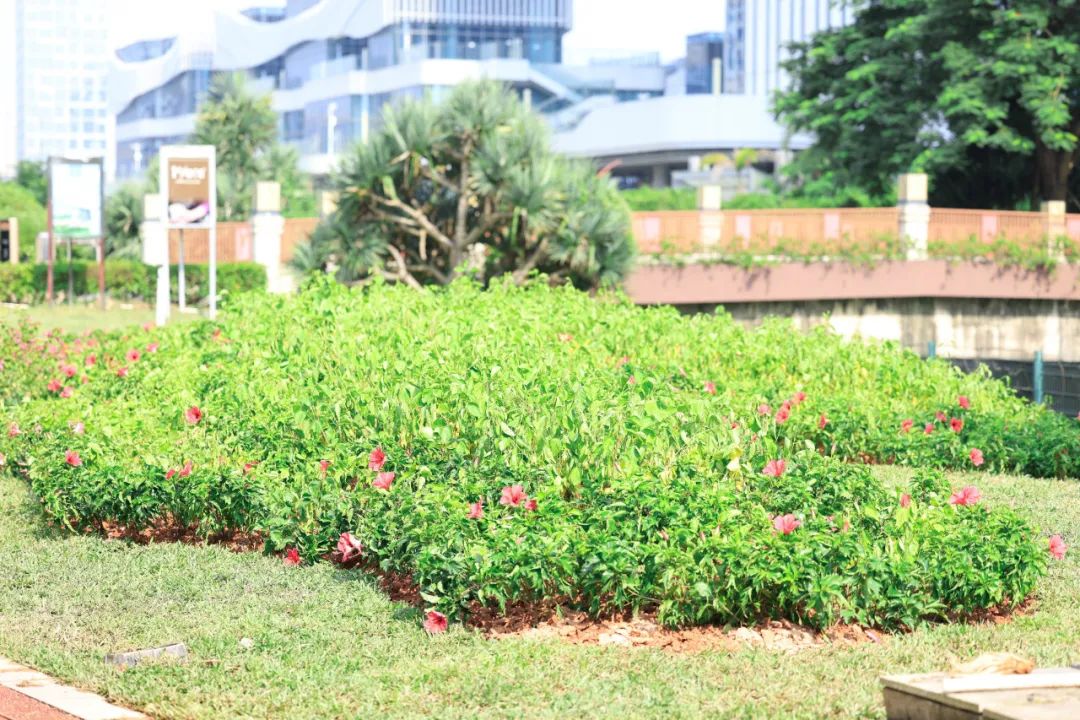 針對(duì)港澳大道南側(cè)交藝文二道東側(cè)(隆義廣場(chǎng)段)周邊的3處綠地存在的雜草繁盛,草皮長(zhǎng)勢(shì)不佳,垂榕綠籬缺株,現(xiàn)場(chǎng)電箱及水閥等設(shè)施裸露、缺乏遮擋等現(xiàn)象,開(kāi)展總面積約1655㎡的綠化改造。
