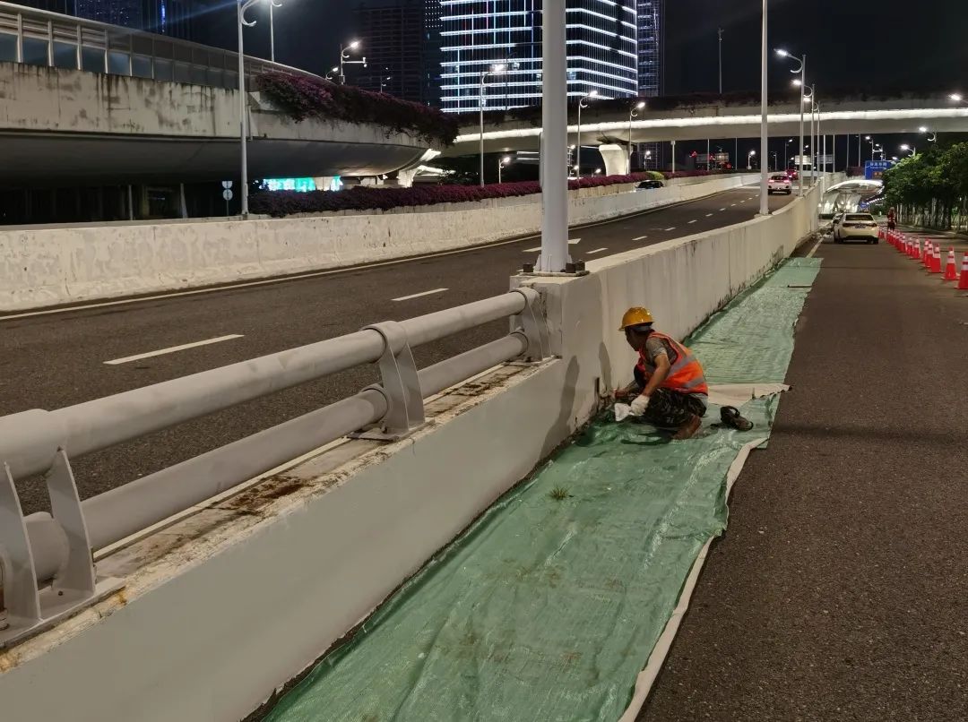 道路、橋梁作為基礎(chǔ)交通設(shè)施,也是城市景觀的重要組成部分。為打造靚麗舒適的出行環(huán)境,大橫琴城資在港澳大道立交主線(xiàn)橋及匝道、濠江路立交主線(xiàn)橋及匝道進(jìn)行防撞墻和引橋擋墻的打磨、找平、刷漆等養(yǎng)護(hù)作業(yè),施工面積達(dá)20000㎡,在美化通行環(huán)境、提升路容路貌的同時(shí),切實(shí)消除安全隱患,提升了道路通行安全系數(shù)。