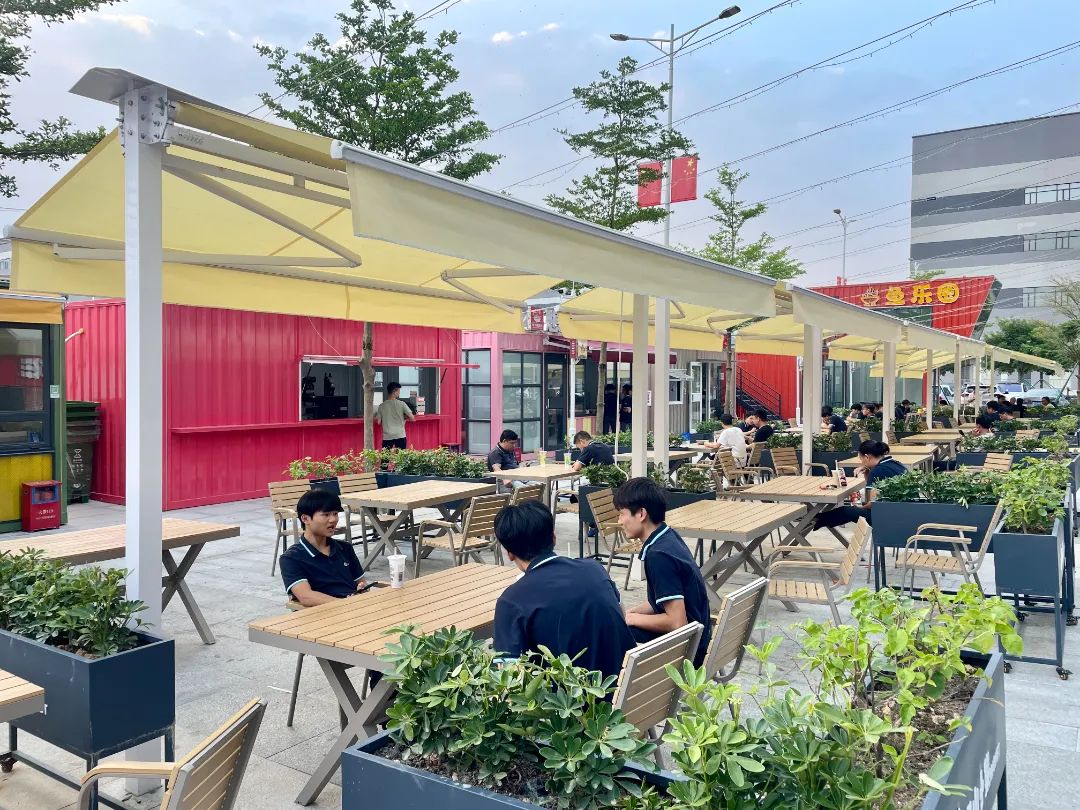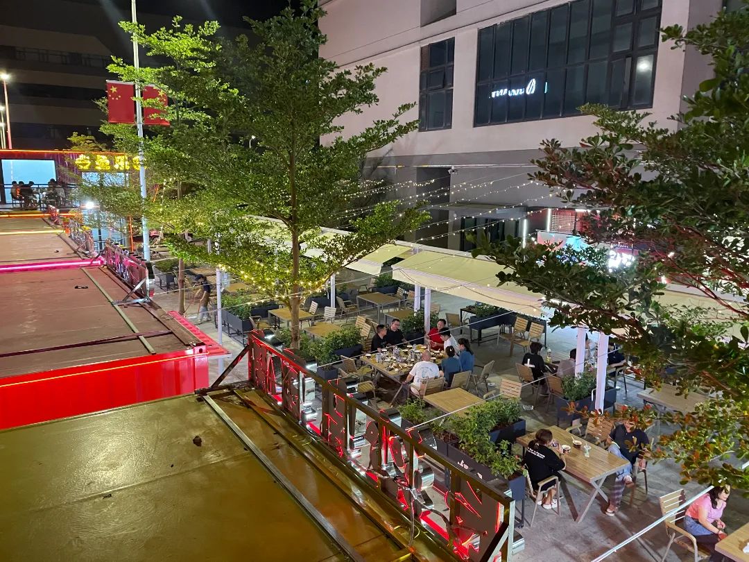 富山街市位于斗門大橫琴5.0產(chǎn)業(yè)新空間,坐落于B區(qū)公服中心西側(cè),占地面積1200㎡,有11個攤位,多個五顏六色的集裝箱錯落有致,儼然是工廠風(fēng)的商務(wù)區(qū)—“廠BD”。