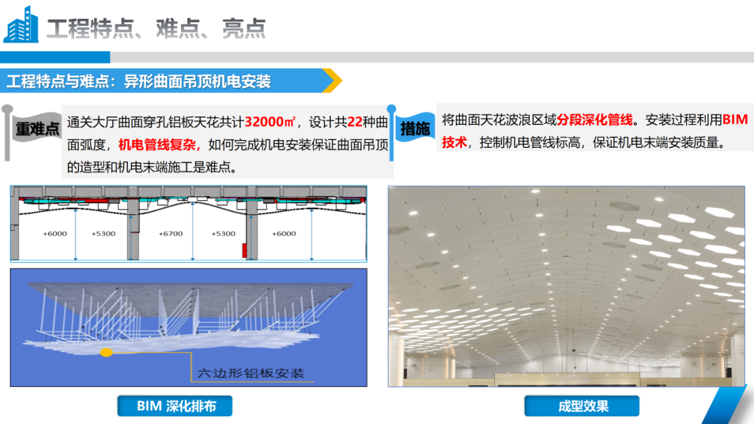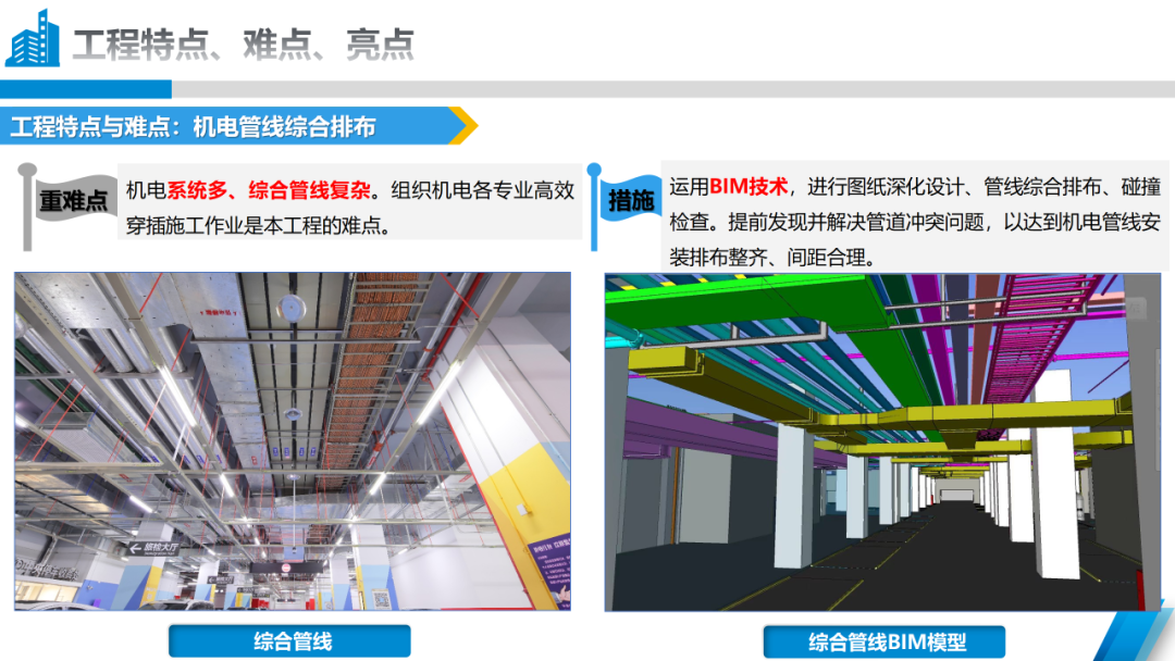 本次獲得“2023-2024年度中國安裝工程優(yōu)質獎(中國安裝之星)”關鍵點在于,橫琴口岸及綜合交通樞紐工程由A區(qū)B區(qū)、C區(qū)主體建筑及南北側交通平臺組成,機電施工內容包括建筑給排水及采暖、通風與空調、建筑電氣三個分部工程。作為一個大體量機電工程,項目機電系統(tǒng)多、綜合管線復雜。在項目建設過程中,承建團隊運用BIM技術,對圖紙進行深化設計、對管線綜合排布并進行碰撞檢查,提前發(fā)現并解決管道沖突問題,以達到機電管線安裝排布整齊、間距合理,確保了本次順利“摘星”。