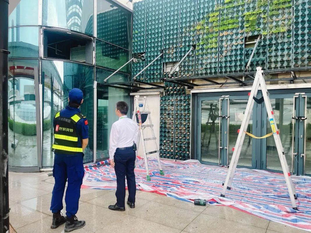 一是對(duì)園區(qū)內(nèi)所有建筑物門窗關(guān)閉情況進(jìn)行檢查,安排人員上門協(xié)助企業(yè)客戶關(guān)閉門窗并建立留存企業(yè)應(yīng)急聯(lián)系人聯(lián)系方式。二是對(duì)園區(qū)內(nèi)種植樹木進(jìn)行檢查,已加固并將過多過長(zhǎng)的樹枝修剪858余棵。三是清理各建筑物樓頂天面雜物,疏通天面下水系統(tǒng);檢查各區(qū)地面排水井道,清理井內(nèi)雜物。四是放置防汛沙袋2200包至園區(qū)電梯、展廳處、天面、商鋪入戶門、樓層連廊、地庫入口等重點(diǎn)部位。五是收回園區(qū)室外水馬、鐵馬、雪糕筒、拒馬、商業(yè)外擺、煙灰缸、垃圾桶、花箱、一米欄、國(guó)旗等室外可移動(dòng)物品約500個(gè)。六是協(xié)助企業(yè)客戶搬運(yùn)外擺花箱、休息桌椅、太陽傘物品約20余套。七是發(fā)出臺(tái)風(fēng)預(yù)警信號(hào)溫馨提示6宗。八是關(guān)閉斗門大橫琴5.0產(chǎn)業(yè)新空間C區(qū)及橫琴國(guó)際科技創(chuàng)新中心4幢運(yùn)動(dòng)中心。九是啟動(dòng)橫琴國(guó)際科技創(chuàng)新中心9號(hào)樓應(yīng)急避難場(chǎng)所1處,接收避難工人534 人。備用斗門大橫琴5.0產(chǎn)業(yè)新空間應(yīng)急避難場(chǎng)所G1、G2、G3廠房3處,以滿足園區(qū)防御工作需要。