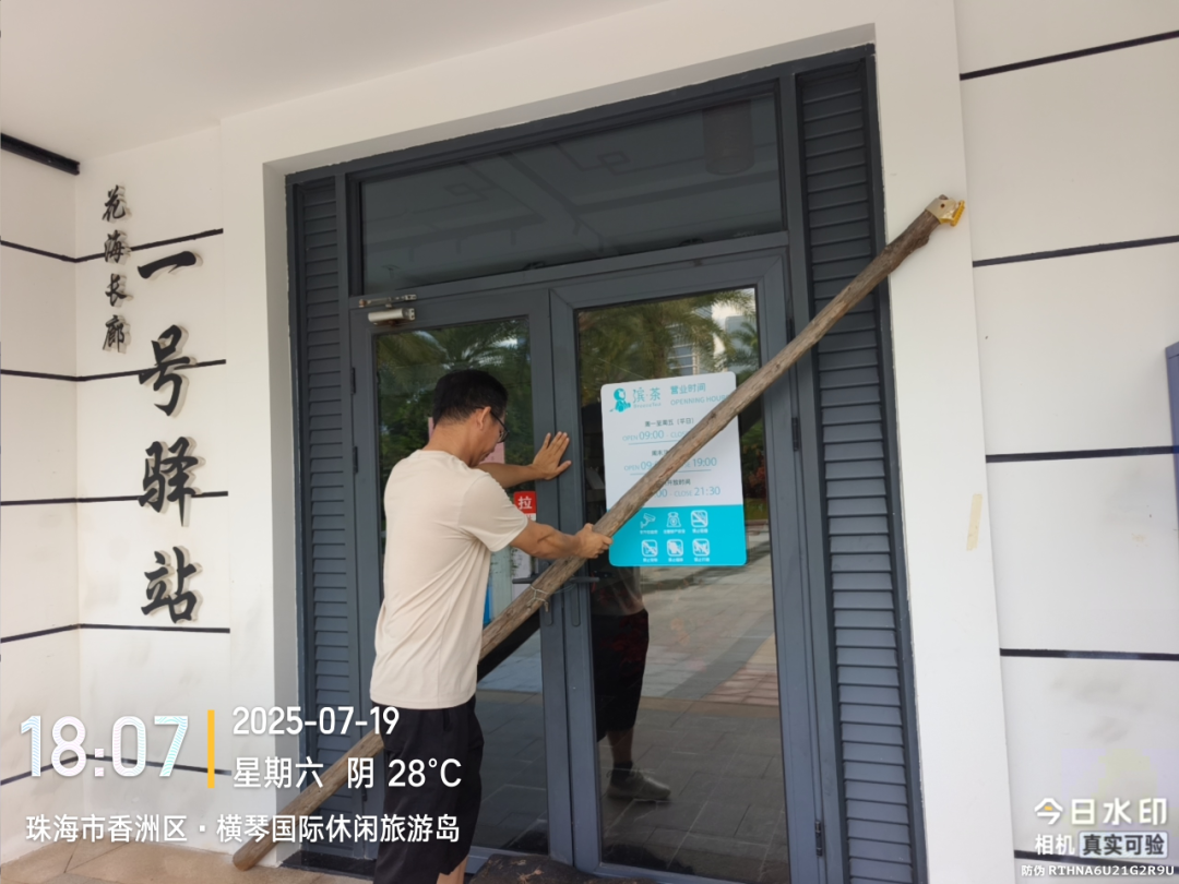 大橫琴泛旅游公司對(duì)星樂度·露營(yíng)小鎮(zhèn)、芒州濕地公園、天湖酒店、天沐酒店、驛站等項(xiàng)目進(jìn)行巡查,將園區(qū)外圍門窗、遮陽傘、垃圾桶等進(jìn)行加固或回收,檢查各區(qū)域易發(fā)生進(jìn)水地點(diǎn)并用防汛沙袋封堵。安全轉(zhuǎn)移并妥善安置在建項(xiàng)目、運(yùn)營(yíng)項(xiàng)目人員,將住宿員工往星旅酒店進(jìn)行轉(zhuǎn)移,做好公司防臺(tái)值班巡查搶險(xiǎn)人員安排,組織246人應(yīng)對(duì)搶險(xiǎn)工作。
