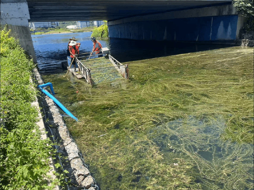 針對(duì)不同區(qū)域的水草特點(diǎn),精準(zhǔn)施策:大面積區(qū)域用機(jī)械打撈船快速收割;淺灘水草由專(zhuān)人下水割草;零散水草由保潔船只人工打撈;水面漂浮的斷根水草及浮萍,則利用攔污排攔截,防止擴(kuò)散。
