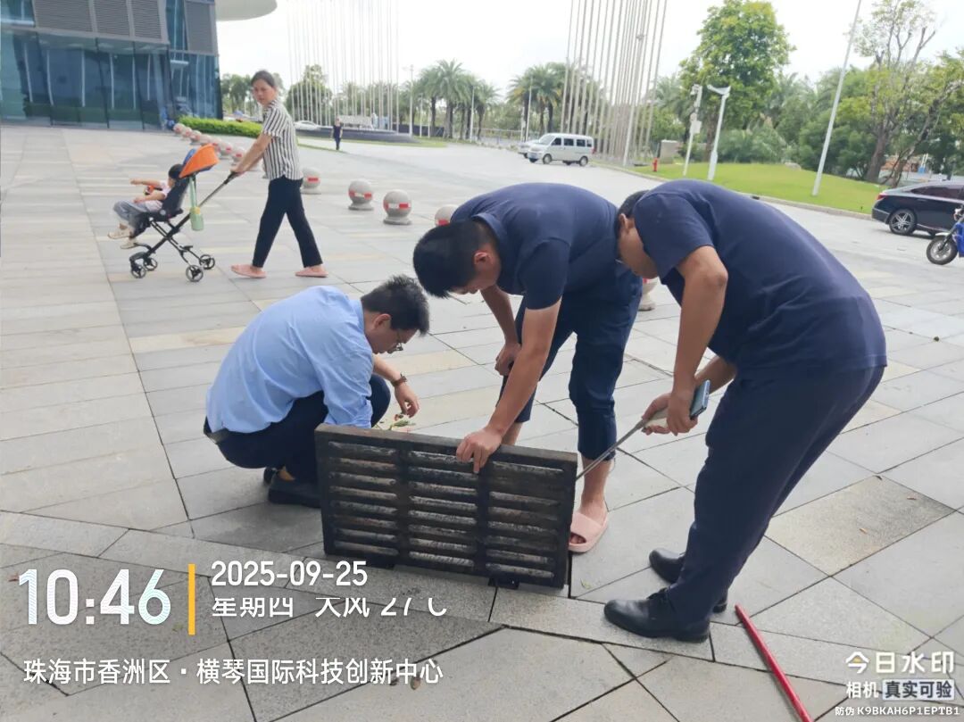 臺風(fēng)期間,受風(fēng)暴潮影響,橫琴天沐河水位上漲,珠光集團(tuán)迅速組織搶險力量,通過加筑沙袋有效阻止海水倒灌進(jìn)天沐河,同步安全轉(zhuǎn)移設(shè)備設(shè)施,并緊急安裝抽水設(shè)備清理積水,避免變電房被水浸泡。臺風(fēng)過境后,搶險隊伍立即投入后續(xù)清理工作,第一時間清理泵站進(jìn)水口垃圾,保障泵站排水通暢,降低村渠水位;清理排水口垃圾,保障土渠排水暢通;并全力協(xié)助合作區(qū)市政管理署,清理倒塌的邊境圍網(wǎng)。