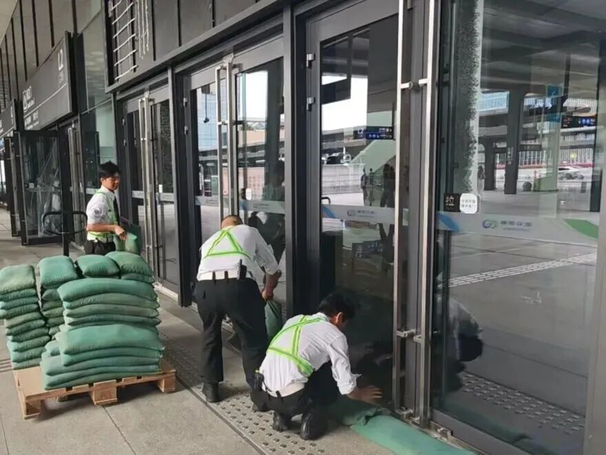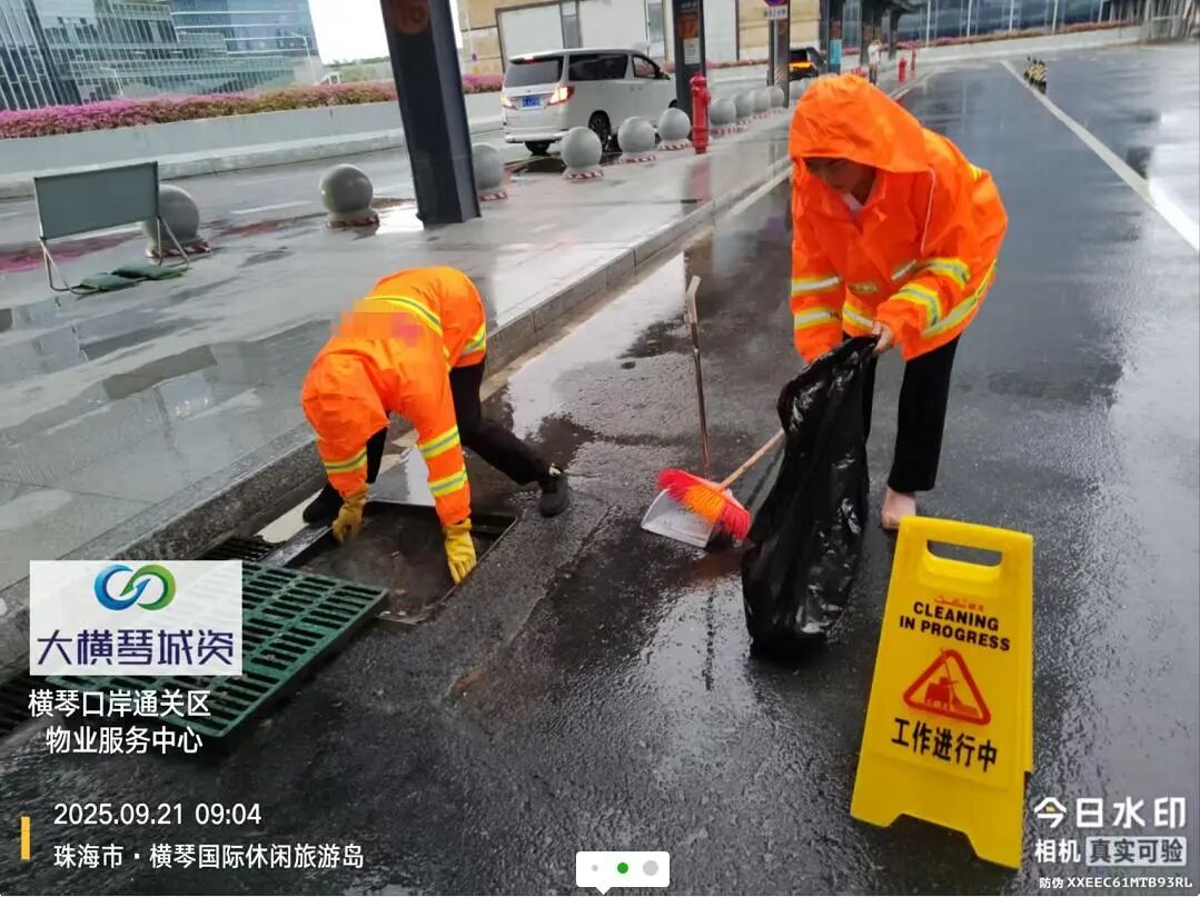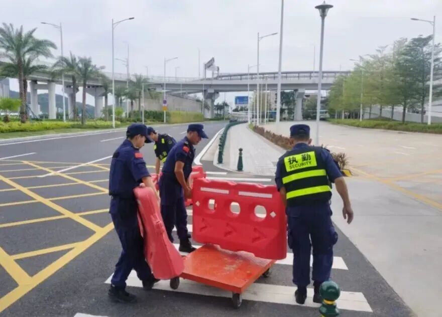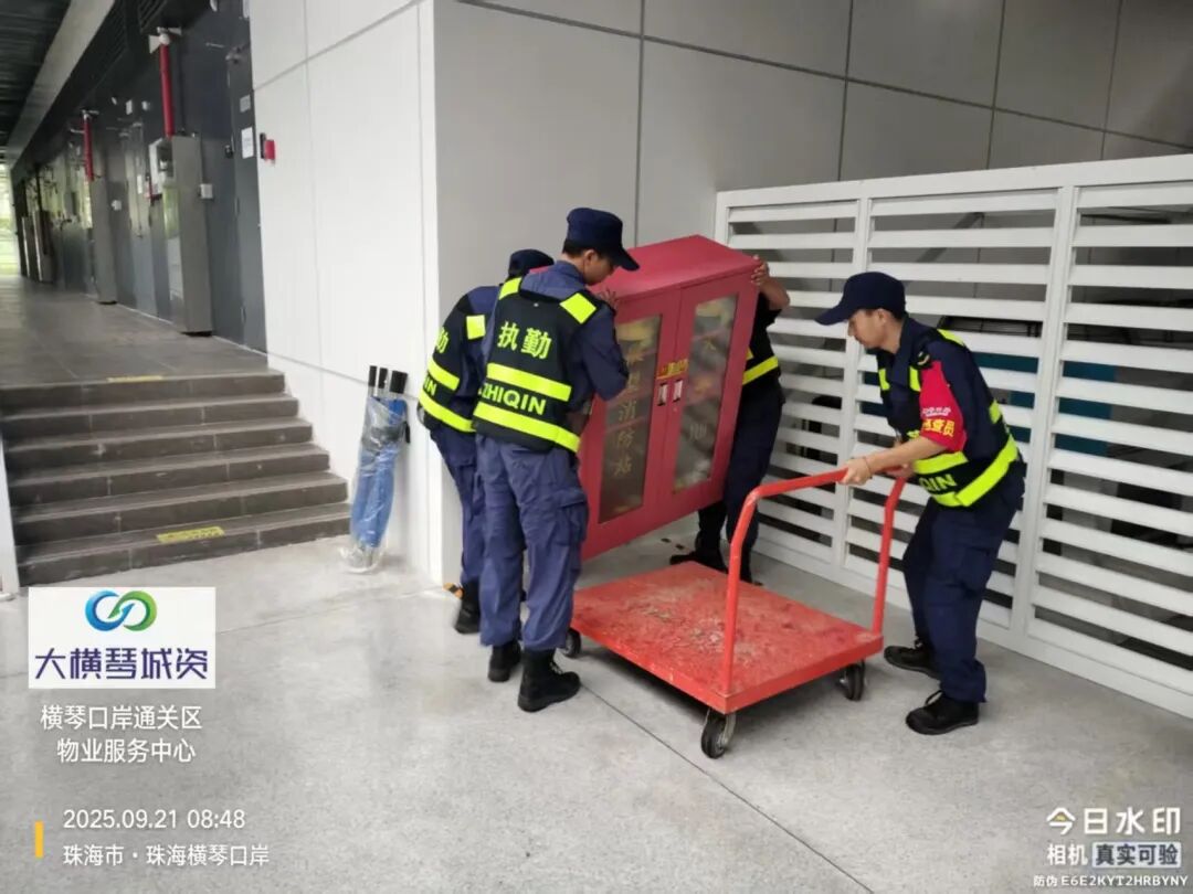 在橫琴口岸區(qū)域,提前排查200多個(gè)集水井,調(diào)集230個(gè)緊固件加固門窗,近3000條沙袋、近100個(gè)防洪擋板、11臺水泵等應(yīng)對福臨道、地庫36處接駁口、負(fù)二層下沉庭院、U行車道等重點(diǎn)區(qū)域強(qiáng)排和封堵需要。同時(shí)對通關(guān)區(qū)域的100余扇玻璃門進(jìn)行加固,在易水浸區(qū)域放置沙袋、擋板。同時(shí),全面清理雨水井、排水溝渠,確保排水暢通。